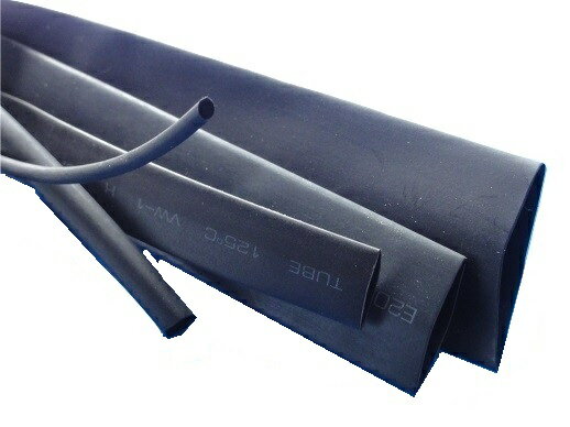 この熱収縮チューブは熱を加える事で元の半分くらいの径に縮むので、配線保護の用途で使用される電材部品になります。